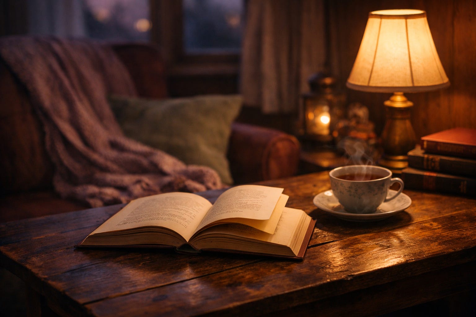 I closed the book partway and sat there with it, my finger holding the page like I didn’t trust it not to disappear if I let go. I remember thinking how strange it was that a handful of words could do that. How they could interrupt the evening, making me feel suddenly alert, reverent, and a little undone all at once.